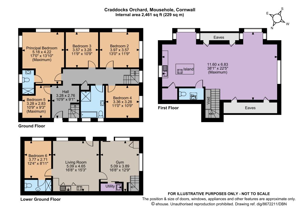 The ground floor accommodation flows from a welcoming entrance hall with decorated wooden flooring, continuing through to give access to all rooms on this level. Including five of the property’s six bedrooms, three of which with seaward facing views with the dual aspect principal benefitting from an en suite shower room. There is also a contemporary family bathroom with bath and separate shower.