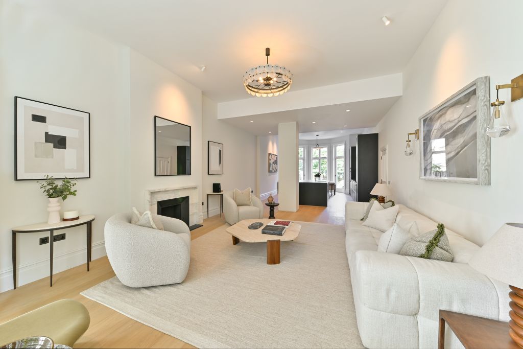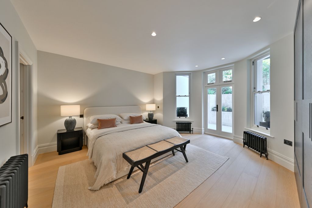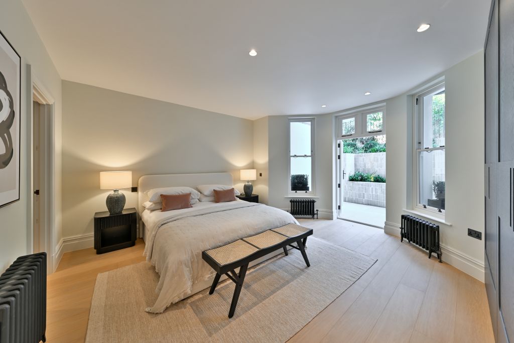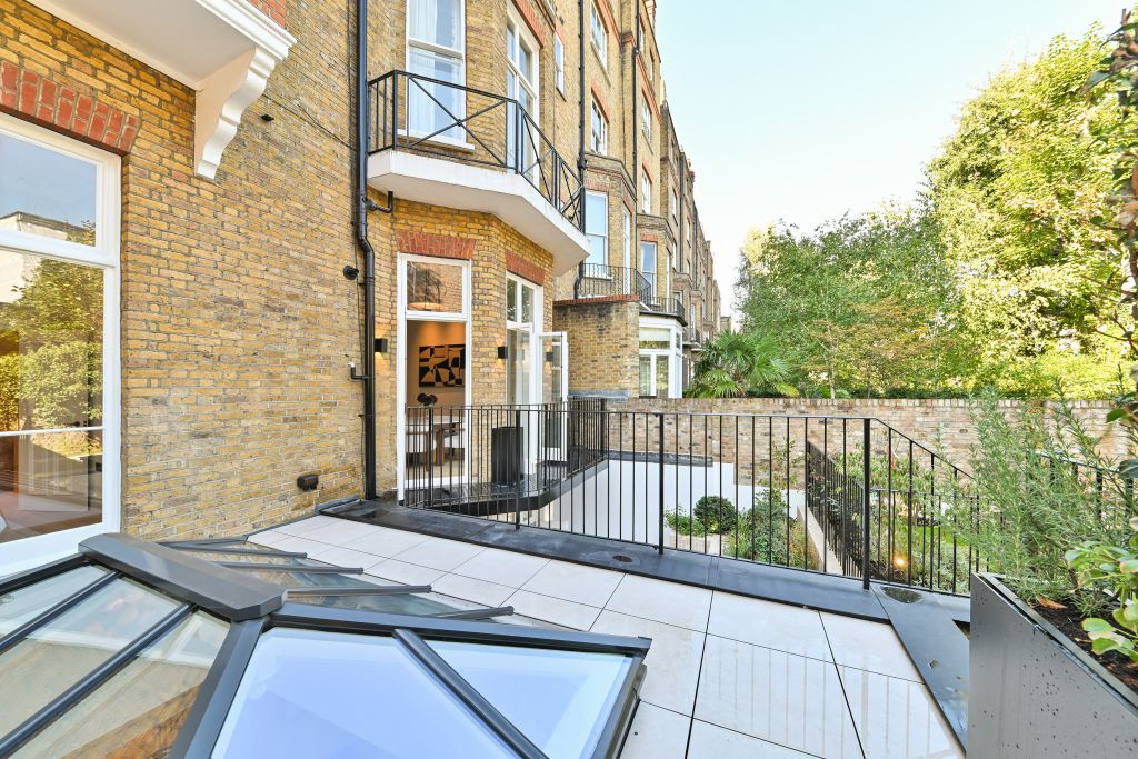 At the rearof the property, bi-fold doors open onto an expansive private garden of approximately 830 square feet. Landscaped to create a serene outdoor retreat, ideal for entertaining or family living. Residents also enjoy access to beautifully maintained private communal gardens opposite.