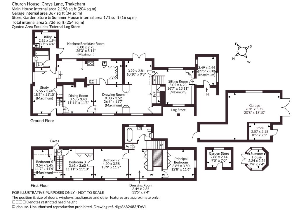On the first floor there are four well-proportioned bedrooms. The principal bedroom is a particular feature, benefiting from a substantial adjoining dressing room. The bedrooms are served by a family bathroom, fitted with a freestanding roll-top bath.