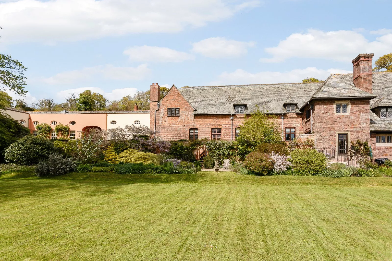 The Limes is believed to have been the coach house for Creedy House, formerly the country estate of the Ferguson Davie family, which was divided into several exclusive residences in the 1970s. The property is Grade II listed and retains many of the features of the original building, sensitively converted and updated over the years by successive owners to create a spacious and flexible family home. The ground floor accommodation is naturally well lit with open views across former parkland. The entrance door opens into a lobby with slate flooring that was reclaimed from the former estate kitchen. At the heart of the ground floor is a triple aspect open plan living space, with a wood burning stove and slate floor, leading to a sisal carpeted dining area. The kitchen is well-equipped with handmade reclaimed teak fitted units and a gas range cooker. A snug/play room, boot/utility room with butler sink and separate WC complete the ground floor. Upstairs are four bedrooms and three bathrooms. The spacious main bedroom has an ensuite bathroom. Bedroom three is a dual aspect double room with stunning south facing views serviced by a private bathroom whilst the two further double bedrooms are serviced by a a family bathroom which benefits from a walk in shower. A further WC can be found on a half landing on the rear staircase. A large attic is accessed via bedroom three, is fully boarded and runs the length of the house, providing ample storage space. The property also has extensive brick walled cellars, with high vaulted ceilings, which run the length of the house. These are accessed from the courtyard, with three separate rooms including the original cider and wine cellar for Creedy House.