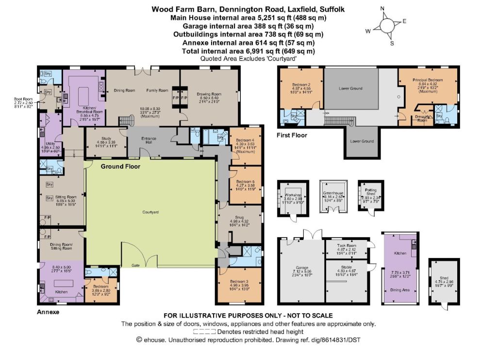 General Local Authority: Mid Suffolk District Council Services: Mains electricity and water. Underfloor heating provided by air source heat pumps with supplementary electrical radiators in upper floor bedrooms. Solar panels supplement the barn's electrical requirements as well as benefiting from a quarterly feed-in tariff payment from EDF Energy. Private drainage is provided via a dedicated treatment plant which complies with the relevant regulations. Council Tax: Main house band G; Annexe band A Tenure: Freehold