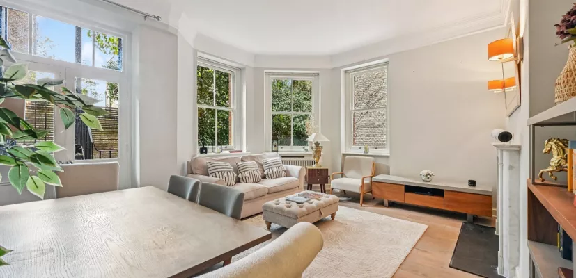 Measuring approximately 894 square feet, this raised ground floor flat provides comfortable accommodation in a desirable Chelsea location. The layout is thoughtfully arranged, with a guest cloakroom off the entrance hall, followed by the family bathroom and separate kitchen. A second bedroom with an en-suite shower room lies beyond, leading to a bright reception and dining room at the rear, an ideal space for relaxing and entertaining.