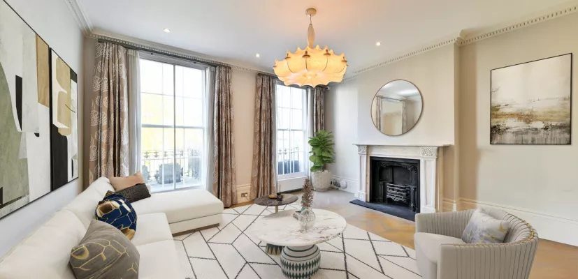 Set on the sought-after Drayton Gardens in the heart of Chelsea SW10, this elegant four-bedroom terraced house combines timeless period architecture with beautifully modern interiors. Immaculately presented throughout, the house offers generous living space arranged over five well-designed floors, complete with a west-facing garden and a rare double garage.