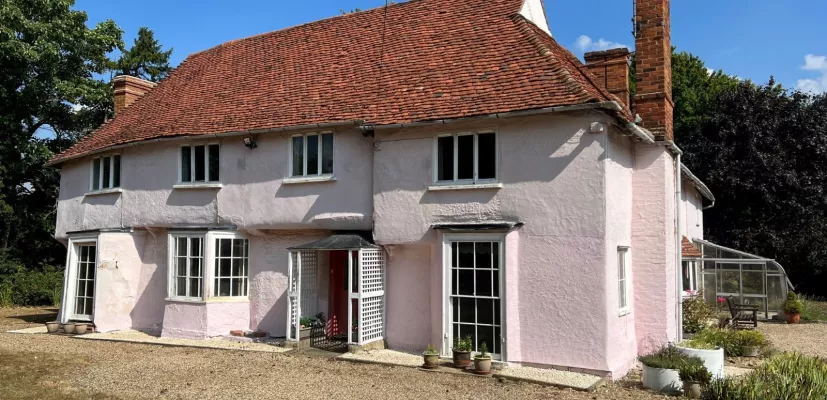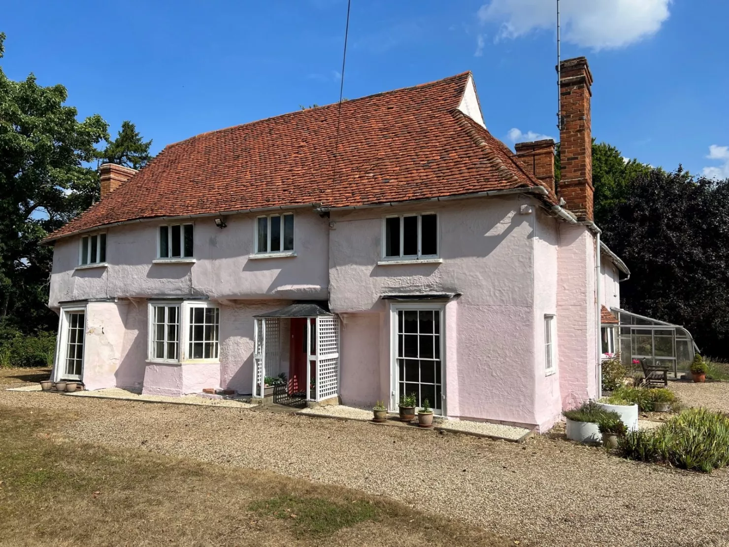 Duck End Farmhouse is a splendid Grade II listed property, set in a convenient position within easy reach of Bishop’s Stortford. The farmhouse, dating from the 16th century, has a variety of magnificent original features. While some modernisation may be required, the property has spacious, flexible accommodation with a wealth of period character throughout. The property is timber-framed, with plastered elevations and jettied upper levels overhanging the ground floor, while inside there are heavy timber beams throughout, as well as grand original fireplaces. The three main ground floor reception rooms have bay windows overlooking the garden and welcoming plenty of natural light. The largest of the reception rooms has an impressive inglenook fireplace, which has been fitted with a woodburning stove. The kitchen has an Aga and fitted storage units, while the adjoining utility room provides plenty of further space for appliances and storage. Upstairs there are five double bedrooms, including the generous principal bedroom which has an adjoining studio or dressing room space. The first floor also has a family bathroom and a shower room.