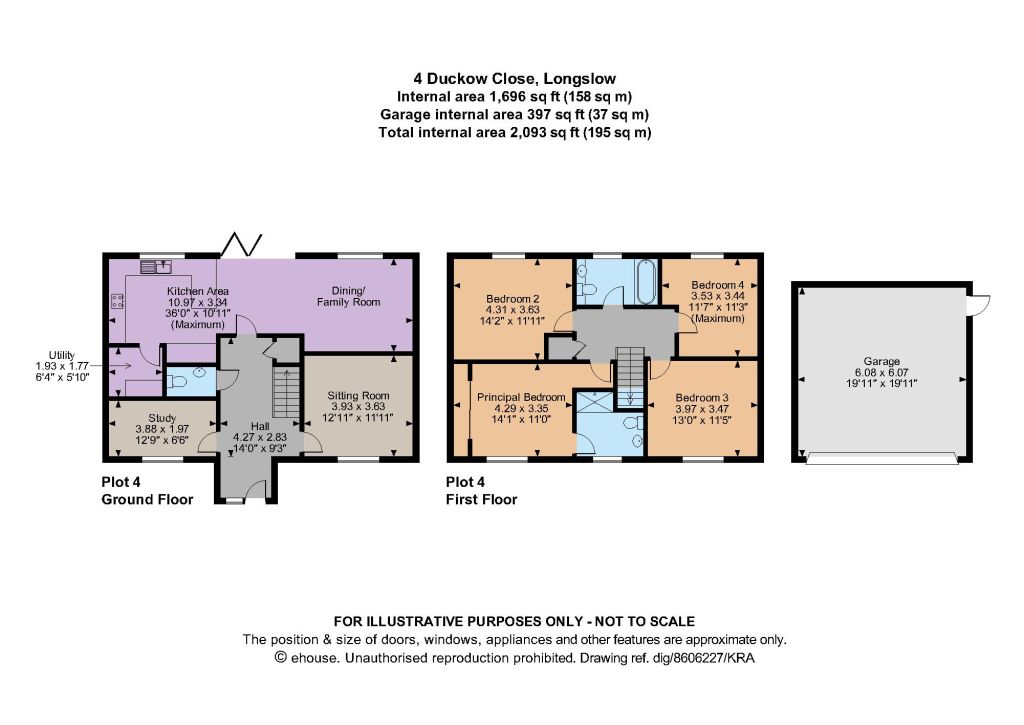 The well-equipped kitchen area offers a range of wall and floor units with quartz worktops which incorporates a breakfast bar. The modern appliances consist of induction hob with extractor fan above oven, upright integrated fridge freezer and dishwasher. The neighbouring utility room with quartz work surfaces and cupboard under has additional appliance space, a door gives side access to the garden. The dining/family area has bi fold doors which lead to the rear garden, ideal for entertaining and alfresco dining. All of the rooms on the ground floor have luxury vinyl flooring apart from the double aspect sitting room which is carpeted. The four bedrooms all of which are carpeted are accessed from the first floor landing which has a handy airing cupboard. The principal bedroom with country views has a range of fitted wardrobes with sliding mirrored doors and incorporates shelving and hanging space, it also boasts a three piece en suite consisting of a shower, heated towel rail and tiled floor. The modern three-piece family bathroom consists of a bath with shower and screen, tiled floor and heated towel rail.