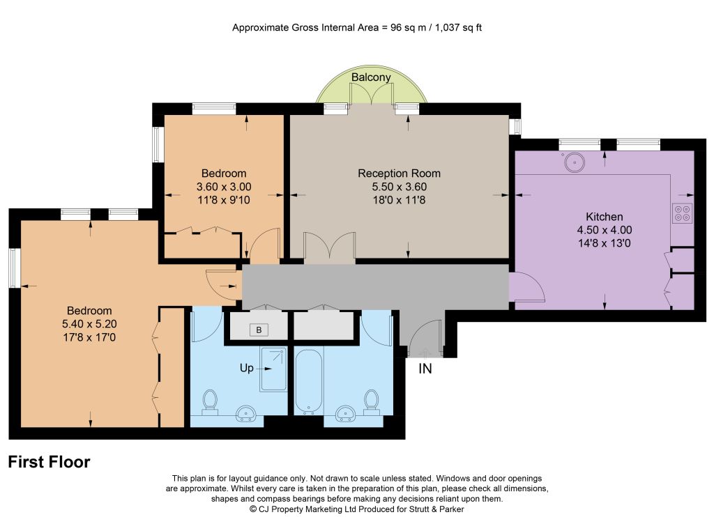 The apartment boasts two spacious bedrooms, the Principal bedroom features an en suite bathroom and build-in wardrobes. The second double is complemented by a family bathroom.