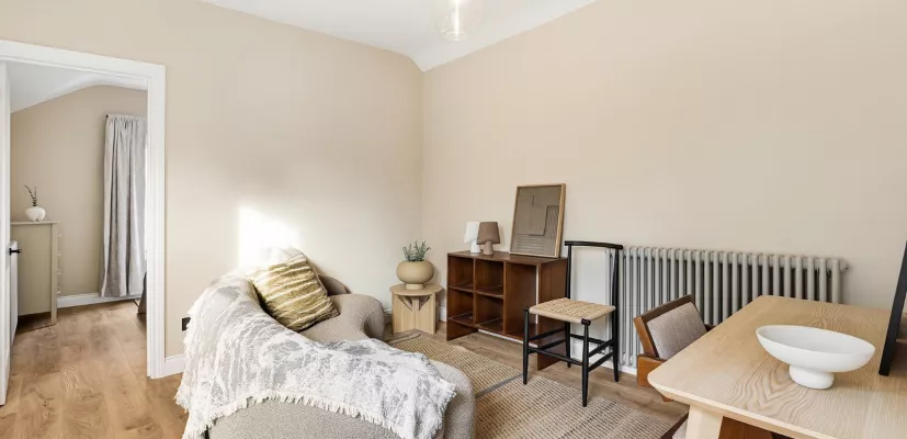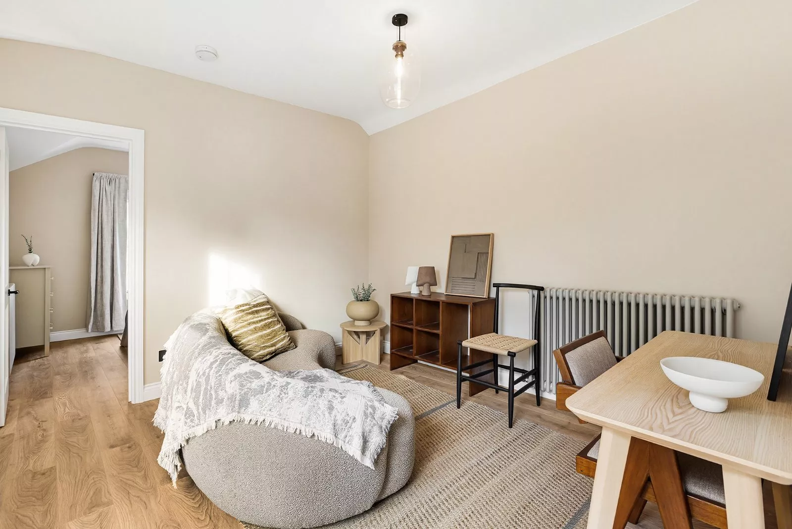 This fabulous, top-floor flat has been beautifully renovated throughout and offers stylish, contemporary living with all the modern conveniences. The property boasts wood flooring throughout, neutral decoration, high quality appliances, underfloor heating and attractive furnishings. Accommodation comprises; reception room, separate kitchen, double bedroom, shower room.