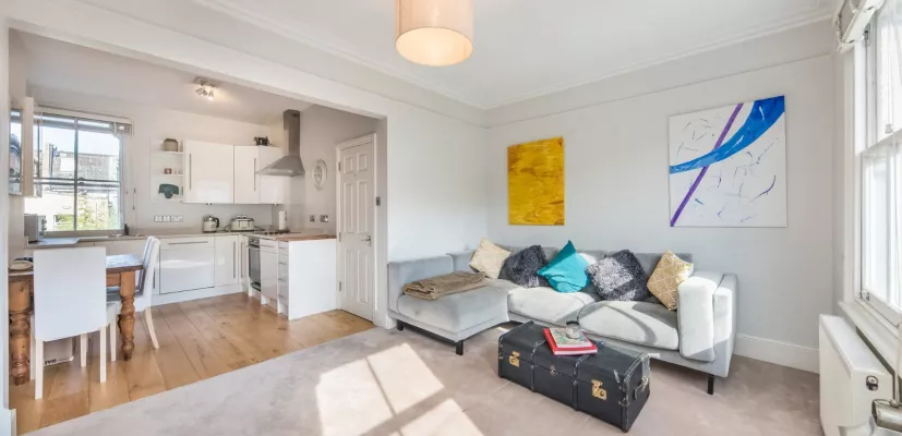 The flat is located on Dymock Street just to the south of the ever popular South Park, which provides fantastic green spaces and also tennis courts. The closest station is Wandsworth town (0.5 miles) providing overground connections in to Victoria and Parsons Green Tube Station (0.7 miles) providing access to the District Line.