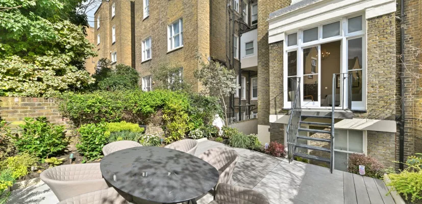 Located on one of the finest garden squares locally, this quiet magnificent flat predominately overlooks the communal square gardens and has a very rare private ground floor level garden.
