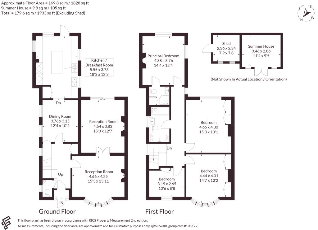 On the first floor, is a spacious, light landing, with the doors to four bedrooms and the main bathroom, and ladder access to the large boarded loft with electric light. The principal bedroom looks out over the garden and features an en suite shower room. There are three further bedrooms, two of which are double in size with useful built-in storage. The bedrooms to the front of the house enjoy an attractive outlook over East Common and St John’s Wood beyond. All are served by a smart family bathroom, complete with a walk-in shower and a roll-top bath. The bathroom also benefits from underfloor heating.