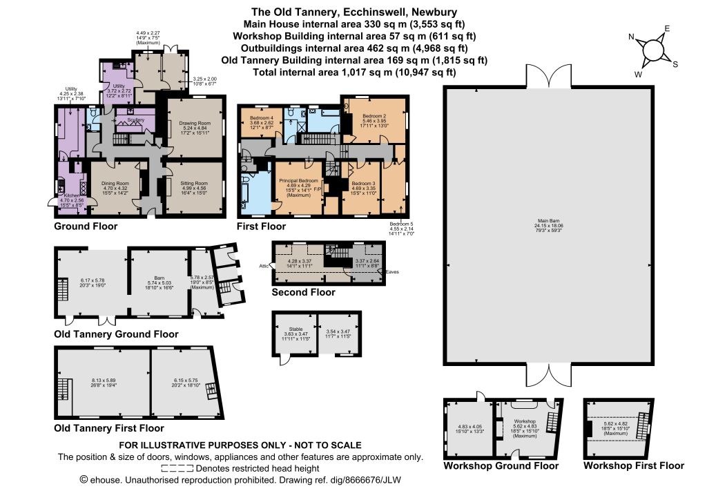 The Old Tannery is a delightful Grade II listed detached property offering an excellent opportunity for updating a much loved, but tired village house. Positioned in the picturesque village of Ecchinswell with its many period homes, The Old Tannery was built in the early 19th Century and boasts plenty of characterful period features including sash windows and original fireplaces. The house opens into a formal hallway with reception rooms either side. The ground floor has four spacious and well-proportioned reception rooms including a formal drawing room, comfortable sitting room and dining room. Three of the rooms have open fireplaces and one enjoys French doors leading to a generous and well stocked garden. The kitchen provides plenty of storage space and scope for development with all the necessary consents. There is also a utility room and scullery. From the hall the staircase leads to the first floor and again up to the second floor. On the first floor there are four large bedrooms with the principal bedroom benefiting from an en suite. There is another smaller bedroom on the first floor and a further room on the second floor. All the bedrooms are light and airy and command delightful views. In addition to the main house there is a separately Grade II listed Old Tannery building (approximately 1,800 sq ft) which has served as garaging, workshop and stables with additional amenity space on the first floor. There is also a large agricultural barn of approximately 4,700 sq ft which is subject to an overage development clause. Please ask the agents for further details.