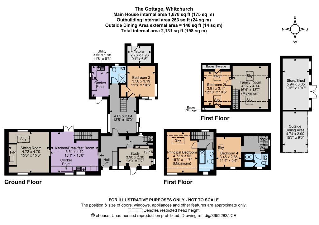 In the original part of the cottage is the dual aspect sitting room with vaulted ceiling and impressive brick and beam fireplace, fitted with a Clearview log burner. Adjoining the sitting room is a well-proportioned kitchen and breakfast room with overhead beams, wooden flooring and French doors opening onto a large gravelled courtyard. There are fitted units and an electric Aga as well as ample space for a large table. Additionally, there is a study, ideal for working from home with a door opening onto the pretty private front garden. Upstairs, are two beautifully styled en-suite double bedrooms, each with private stairway access.