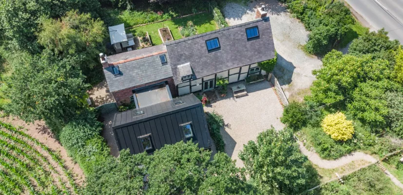 The property Eglwys Cross Cottage is a charming Grade II listed property which dates from the 17th century. It retains a wealth of character features, including exposed timber framing inside and out, and benefits from a striking contemporary, two-storey extension, built in 2020.
