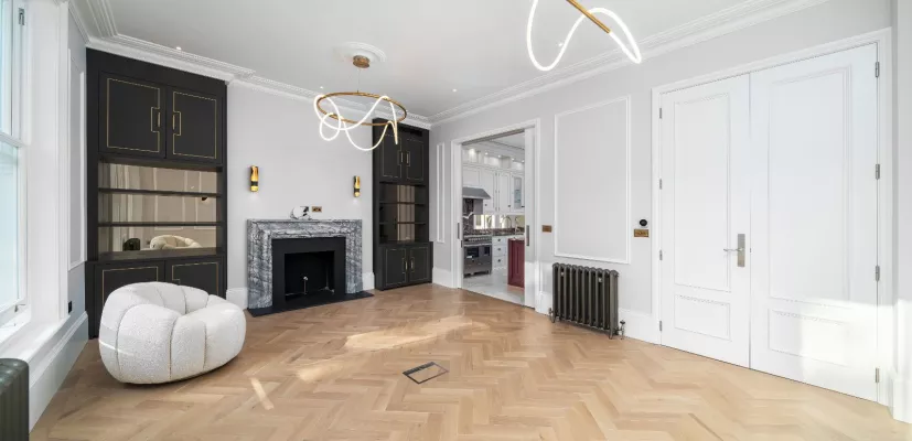 Accommodation is arranged over three floors and comprises; first floor drawing room with excellent proportions and stunning natural light; semi open-plan kitchen with boiling water tap, gas range cooker and central island; first floor principal bedroom suite with extensive fitted wardrobes; four further bedrooms and a family bathroom. Additional benefits include a south-west facing garden, air conditioning throughout, underfloor heating and guest cloakroom.