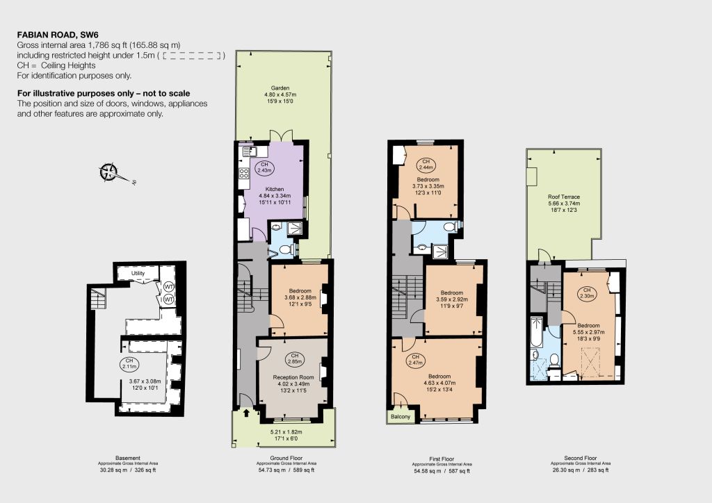 The ground floor comprises two reception rooms, which could be used as a bedroom and reception room or a double reception room these lead through to the kitchen at the rear, which opens directly onto a private south-west facing garden—ideal for families and entertaining. A bathroom is also located on this level. The basement provides a substantial utility and storage area, with clear scope to convert into more functional living space, subject to the usual consents. On the first floor, there are three double bedrooms and a family bathroom, along with access to a large south-west facing roof terrace positioned on the rear addition roof. The second floor is arranged as a spacious double bedroom with an en-suite bathroom, forming an ideal principal suite.