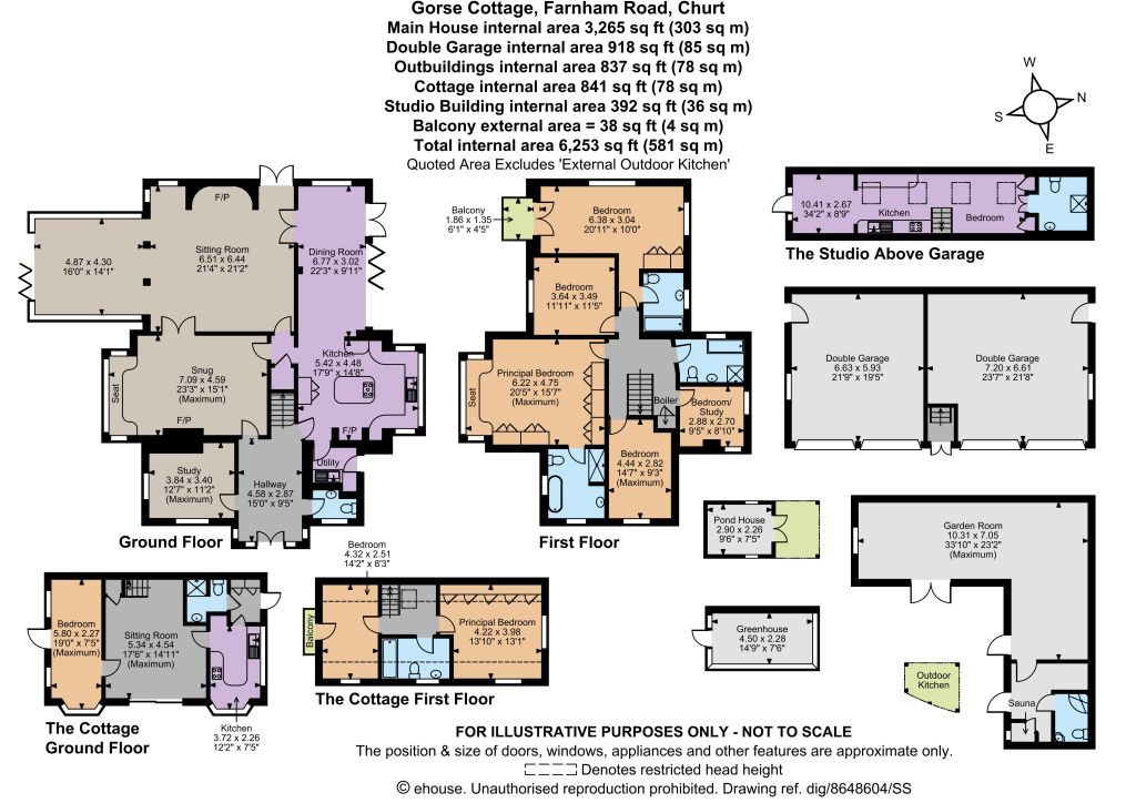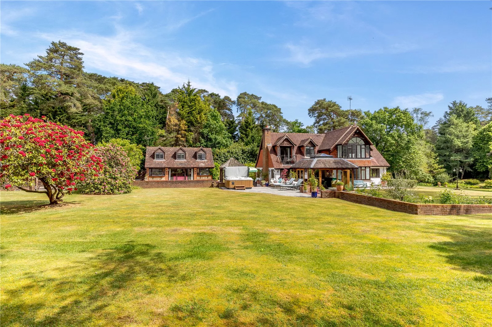 There is private gated access to the woodland behind the property which in turn leads to the Great Pond and Frensham Common. The detached 2 bedroom cottage provides valuable additional accommodation for family, friends, staff or used as a rental property. On the ground floor there is a comfortable sitting room, a well-equipped kitchen, a shower room and additional reception room, while upstairs there are two further bedrooms, plus a bathroom. The garage has a studio above with a kitchen, sitting area, bedroom area and shower room.