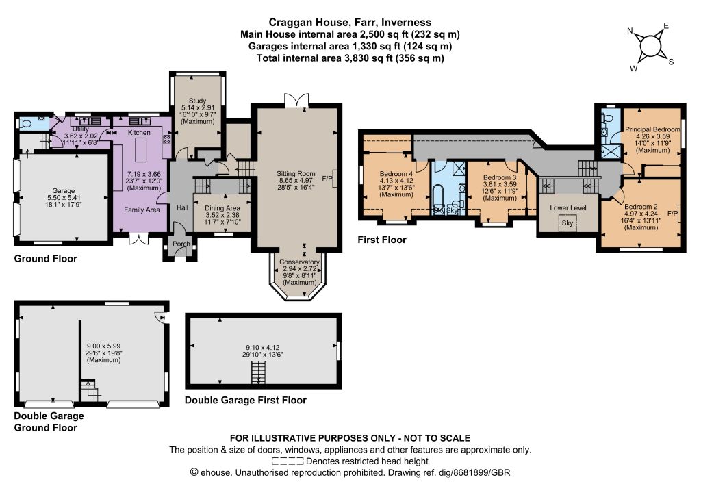 The property is approached via electric gates at the entrance opening onto a gravel driveway, leading to the house and to the integrated double garage. A second double garage is located at the rear, with storage space above. The beautiful garden surrounding the house includes rolling lawn, well stocked border beds and a wealth of established shrubs, hedgerows and trees, as well as timber decking and paved and gravel terracing for al fresco dining. There is a vegetable garden with raised beds and a greenhouse, as well as an open-sided garden shelter offering further seating and dining space, or the potential for use as an outdoor kitchen and barbecue area.