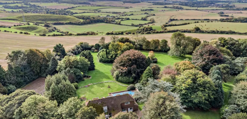 A secluded country house nestled in a mature setting on one of highest points within the North Downs