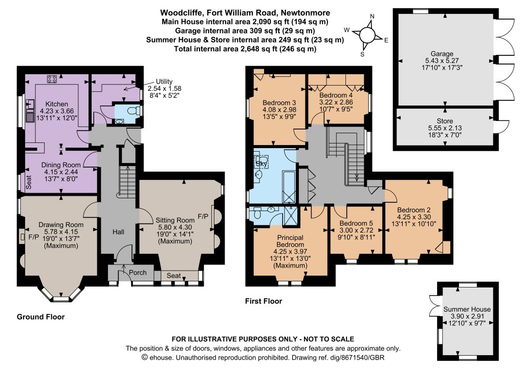 Occupying an elevated position behind low-level stone walling, the property is approached through double iron gates over a sweeping tarmacadam driveway and forecourt. A gravelled side parking area has adjacent five bar gates opening to further parking and a double garage with attached store (both have power connected to them). The generous front garden is laid mainly to gently-sloping lawn interspersed with mature trees and featuring a well-stocked rockery. To the rear the well-maintained enclosed garden is laid mainly to level lawn. It features a large gravelled terrace area and a detached triple aspect summer house with French doors to a covered terrace and adjacent paved and decked terraces to two aspects, the whole ideal for entertaining and al fresco dining and enjoying far-reaching views over surrounding countryside.