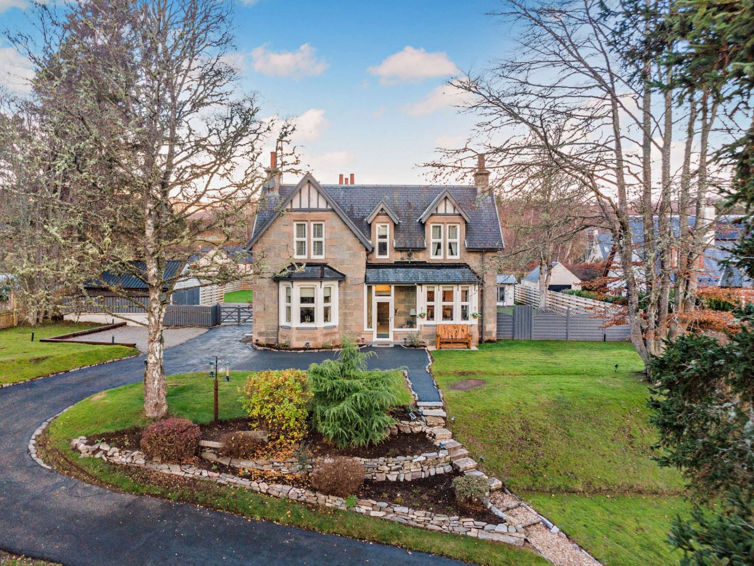 Known as the “Walking Centre of Scotland”, Newtonmore village offers independent shopping, a Co-op, hotel, restaurants, primary schooling, and a riverside golf course. The small town of Kingussie provides local shopping, restaurants, pubs, and secondary schooling. Extensive shopping, leisure, and entertainment facilities are available in Inverness. The surrounding countryside and its proximity to Aviemore and the Cairngorms offer outdoor pursuits including fishing on the rivers Spey and Calder, both running through the village, hill walking, rock climbing, abseiling, whitewater rafting, cycling, mountain biking, skiing, climbing, and sailing. Despite its scenic Highland location, transportation links are excellent: the A9 travels north to Inverness and south to Perth and beyond, Newtonmore station offers regular trains to major regional centres with onward links to London, and Inverness Airport offers domestic and international flights.
