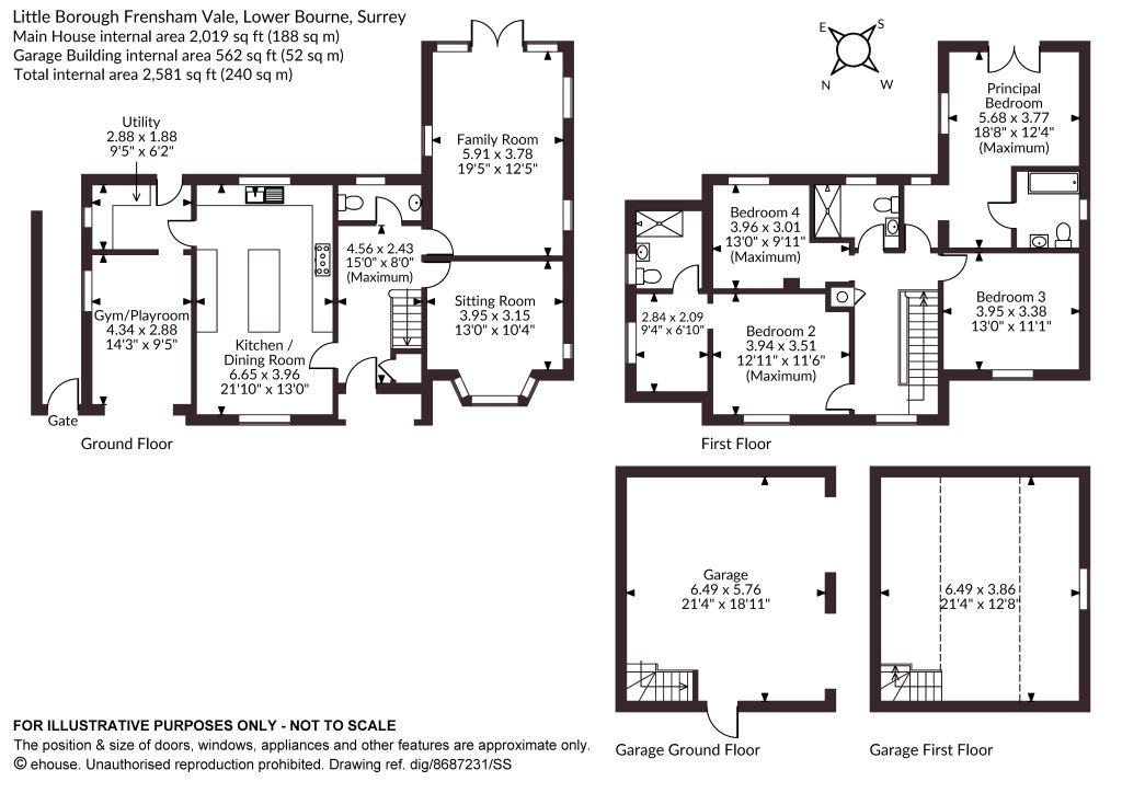 The welcoming reception hall, with its oak staircase, provides access to the principal living areas. The kitchen/dining room forms the heart of the home, a well-proportioned open-plan space designed for modern family living, fitted with quality cabinetry, stunning quartzite work surfaces, a central island and a range cooker, together with ample space for a dining table. A neighbouring utility room offers additional practicality, while a further room, currently arranged as a gym, provides flexible accommodation. The ground floor also provides two reception rooms: a multi-aspect family room with French windows providing direct access to the terrace, and a separate sitting room featuring a bay window and an arched feature window. On the first floor, the galleried landing leads to four well-proportioned double bedrooms. The principal bedroom features a Juliet balcony overlooking the pretty garden and benefits from an en suite bathroom. A second bedroom also has en suite facilities, while the remaining bedrooms are served by a spacious shower room.