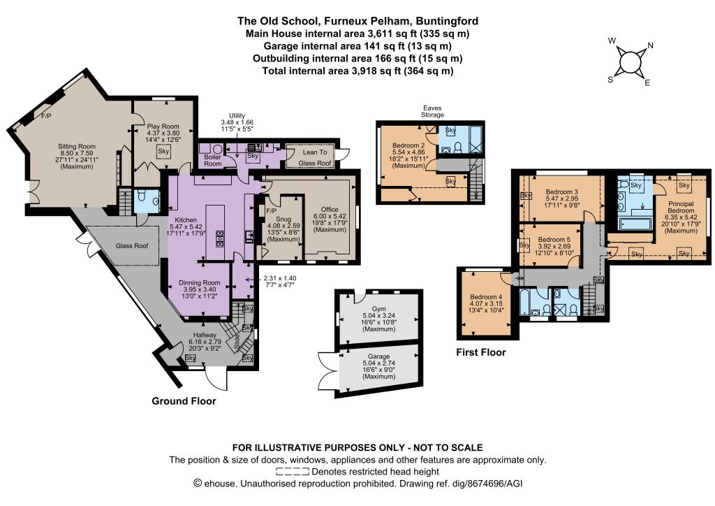 Outside At the front of the property, the gravel driveway provides parking space for several vehicles, as well as access to the garaging block. The gardens to the rear are south-facing and welcome plenty of sunlight throughout the day. They include decking shaded by a pergola across the back of the house, with an area of lawn beyond, further terracing for al fresco dining and bordered of timber fencing and mature trees.