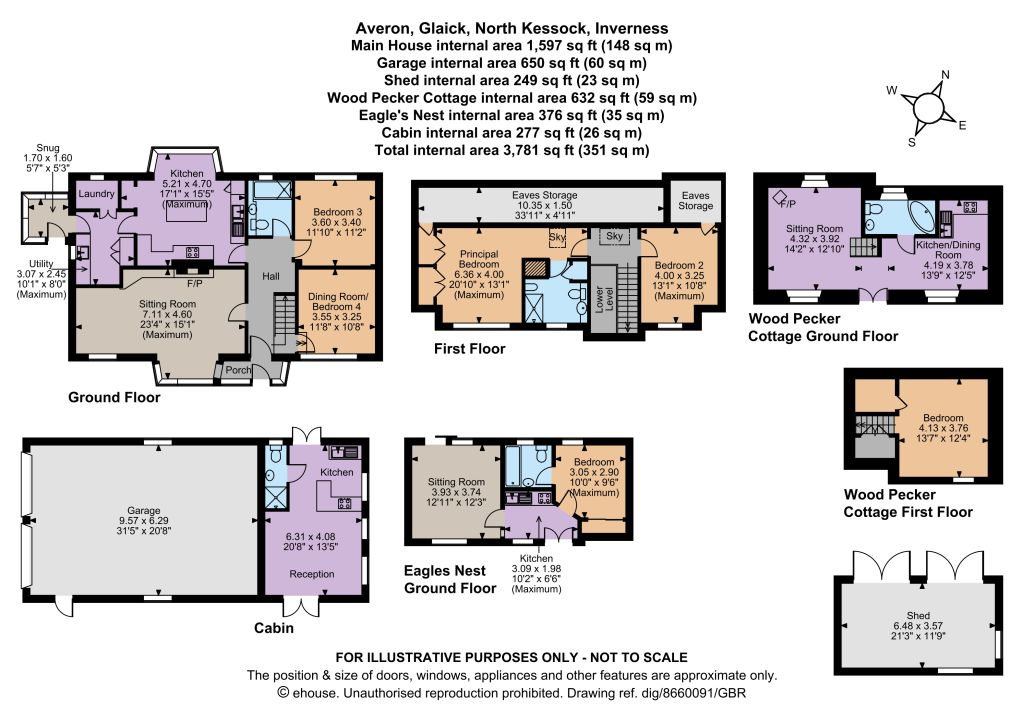 Outside There is a driveway at the front, providing plenty of parking space, as well as access to the detached garaging with its carport at the front and large double garage for further parking or workshop space. There is also an additional large storage shed, while the gardens and grounds surrounding the house and cottages includes rolling lawns, various established shrubs, hedgerows and mature trees and patio areas for al fresco dining, all surrounded by woodland.