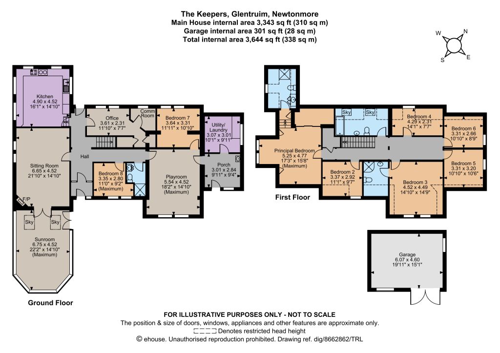 Of the eight well presented bedrooms, two are located on the ground level, along with a shower room. Upstairs there are four double and two single bedrooms, including a generous principal bedroom with a built-in wardrobe, eaves storage and an en suite shower room. A further bedroom has an en suite shower room. Upstairs also has a large family bathroom with an over-bath shower.