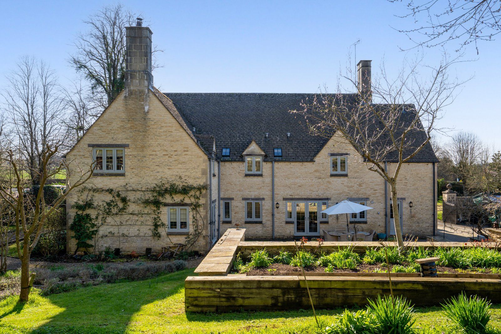 A spacious and well-appointed Cotswold stone family home with landscaped gardens.