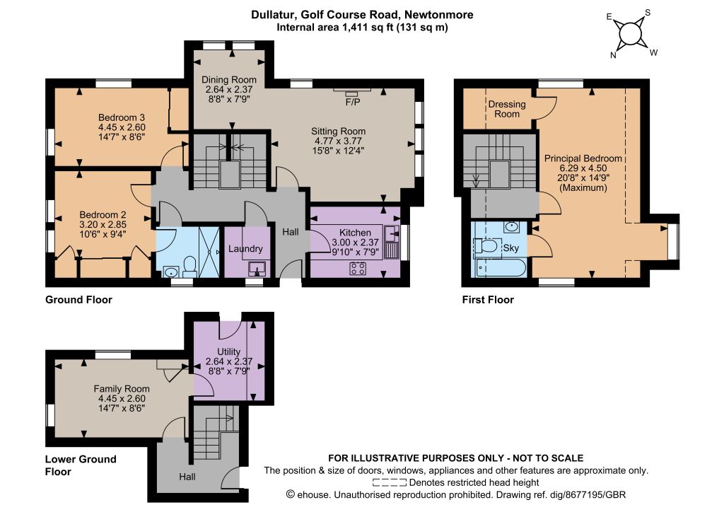 There are two well-presented bedrooms on the ground floor, both of which have built-in wardrobes, and one of which has Jack and Jill access to the ground-floor shower room with its large walk-in shower unit. The staircase leads to the first floor, where there is a generous principal bedroom with a dormer window, its own dressing room and en suite bathroom.