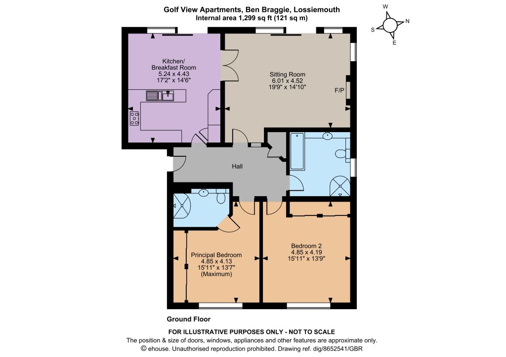 Head to Lossiemouth and take the B9040 onto Stotfield Road where you will find Golf View Apartments located on the left hand side, Ben Braggie is Flat F on the 1st floor.