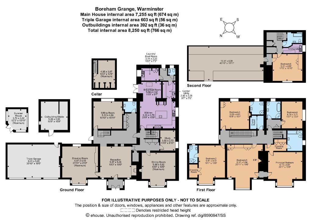 Upstairs, the galleried landing leads to the substantial principal bedroom with its dressing room and en suite bathroom, as well as four further bedrooms, three of which are en suite. The second floor has a further double bedroom and an additional bathroom, as well as a kitchenette, allowing for the possible creation of an annexe. Also on the second floor is the large boarded loft room providing substantial storage space and the potential to be converted.