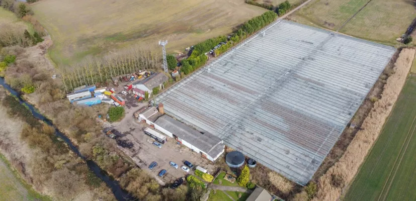 Lot 1 Springtime Nursery About 44.48 acres (18.00 Ha) The level site is accessed directly off the A1 Great North Road and from a local road. The buildings comprise over 181,000 ft² of horticultural and commercial buildings which now offer considerable development potential for a variety of uses considering the location and access, and former use, subject to obtaining the necessary planning consent.
