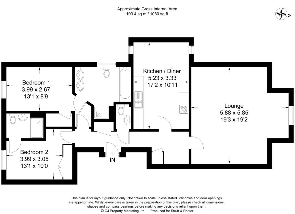 This particular apartment offers spacious and well well-presented accommodation throughout. Lovely kitchen / diner with base and eye level units, fitted appliances and ample space for a dining table. There is a large lounge and separate cloakroom. Btoh bedrooms benefit from en suite facilities.