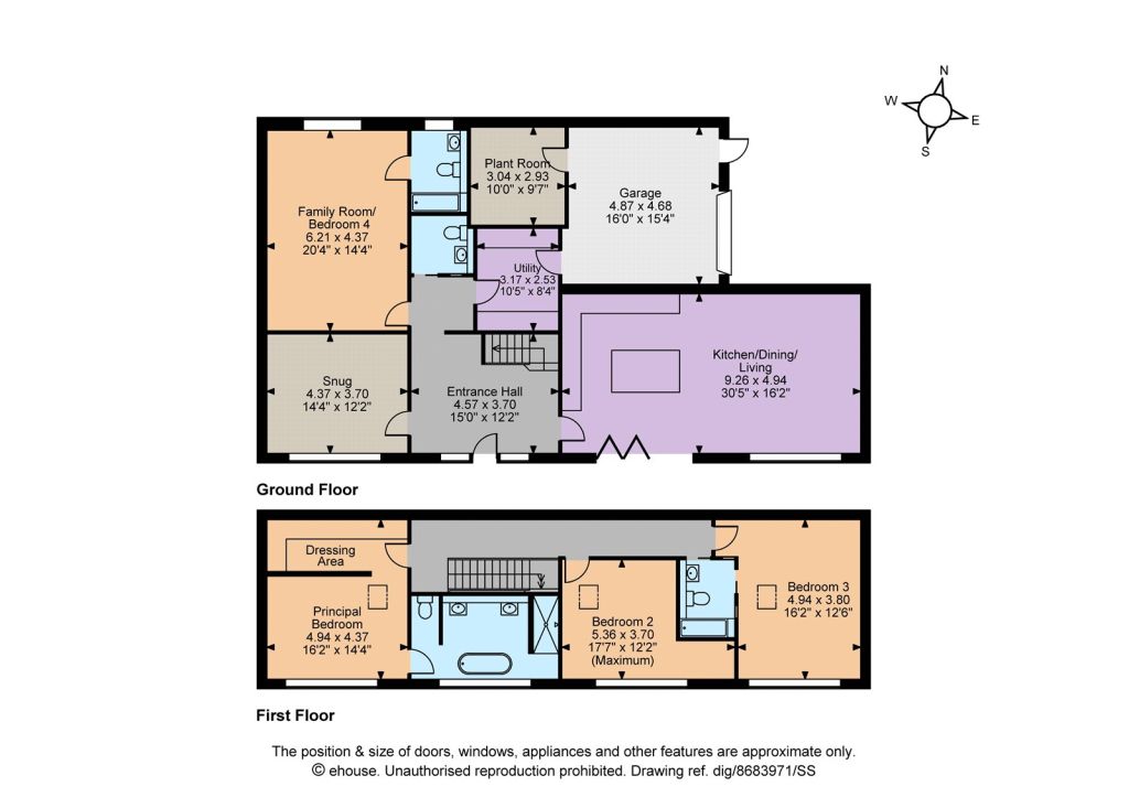 On the first floor there are three sizable double bedrooms each benefiting from south facing picture windows in which to enjoy the far-reaching, stunning countryside views. These include the distinguished principal suite with fitted walk-in dressing area and luxurious bathroom to include twin sinks, a freestanding bath and separate walk-in shower. Bedrooms two and three are also service by a modern ‘Jack and Jill’ house bathroom.