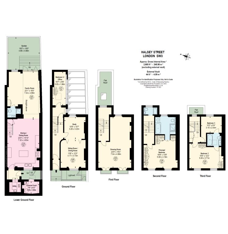 Chelsea Estate & Letting AgentsPrivate Client DepartmentRare to the market, a well-presented Grade II listed four-bedroom family house offering bright well-planned accommodation, leading onto a pretty landscaped west-facing paved garden. Notably, this end of terrace house was the former home of Elizabeth David CBE (Cookery Writer) and benefifits from extra width throughout the house; noticeably in the first-floor drawing room, but it also has a particularly large conservatory extension giving this wonderful house an unparalleled family living space to the lower ground floor. In addition, this is the only house on Halsey Street with a full sheer brick-fronted third floor, rather than mansard extension.