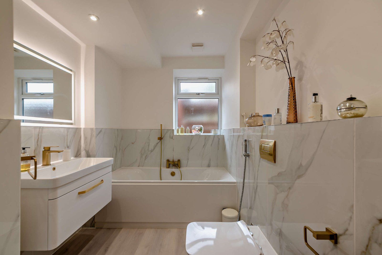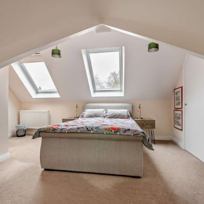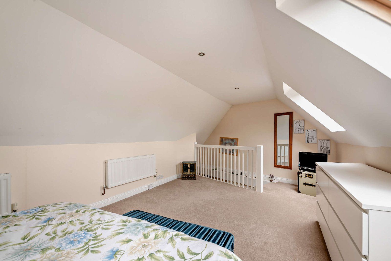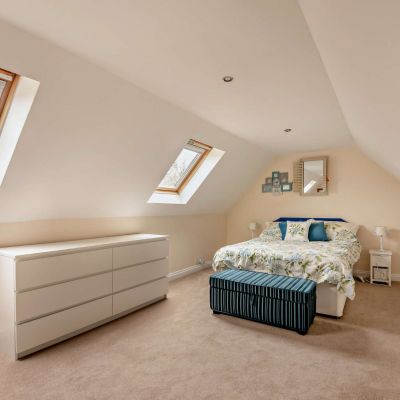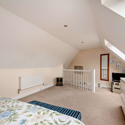 The property offers four generously proportioned double bedrooms, a rare and highly desirable feature. Two bedrooms are located on the ground floor, offering flexibility for guests, multigenerational living or home working. A particularly unique aspect of the home is its two separate staircases, each leading to an individual first-floor bedroom, creating a sense of privacy and character rarely found in modern homes.