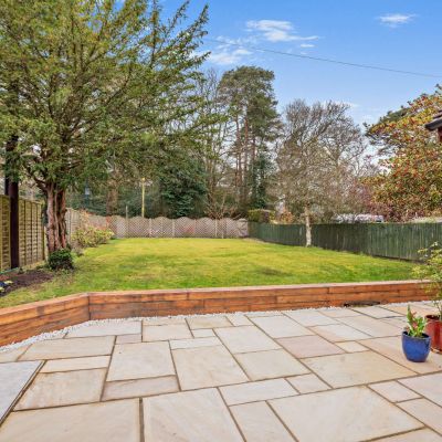 Externally, the property continues to impress. To the rear, a substantial double garage provides excellent storage and secure parking, complemented by additional parking for two vehicles on a paved area. To the front, the home is framed by a large, mature garden, beautifully landscaped with established trees and shrubs, offering both privacy and charm. A newly decorated, expansive patio provides the perfect setting for outdoor dining and entertaining.