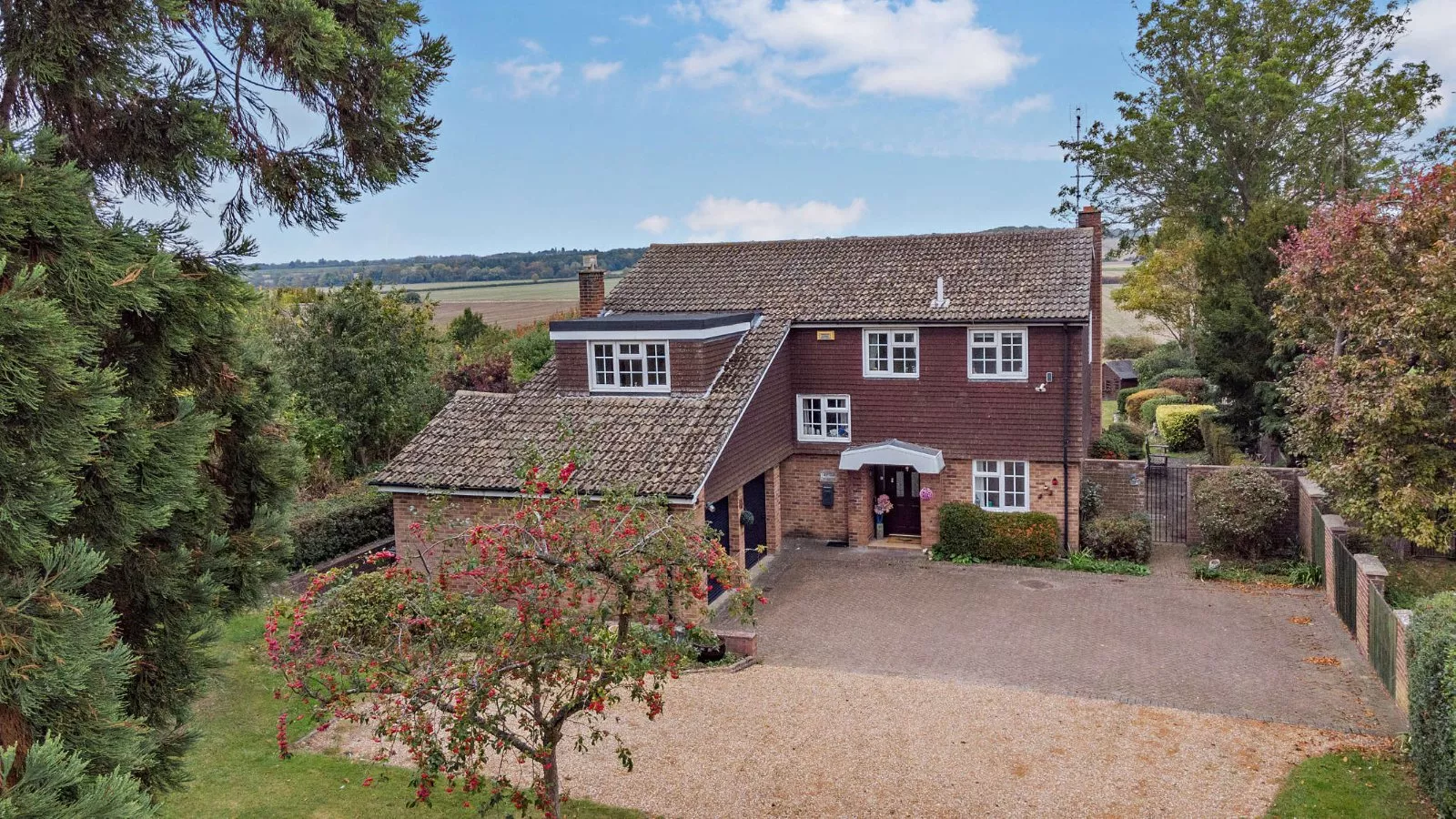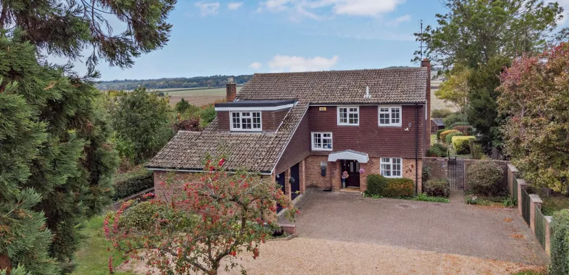 Occupying an elevated position, adjacent to the church and village green, the property is configured to maximise the stunning far-reaching rear aspect views. It enjoys easy access to town centre amenities, the major road network and a station with journey times to central London from around 50 minutes.