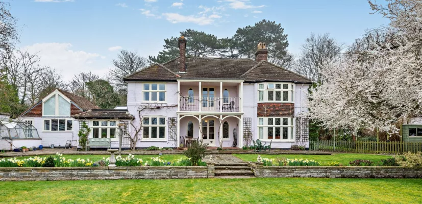 The ground-floor accommodation has been extended and offers access to four well-appointed reception rooms. These include the generous, 23ft family room with its vaulted ceiling and exposed timber eaves, and windows to the front and rear, welcoming plenty of natural light. There is also a drawing room with attractive arched windows and French doors opening to the garden, a peaceful home study for private working and a sitting room with a south-facing bay window and a splendid open fireplace with a tiled inset. At the heart of the ground floor is the social kitchen and dining area, which has farmhouse-style units, wooden worktops, a central island, integrated appliances and an Aga, as well as French doors to the garden, a skylight overhead and space for a family dining table. Additional space for home storage and appliances can be found in the utility room and boot room.