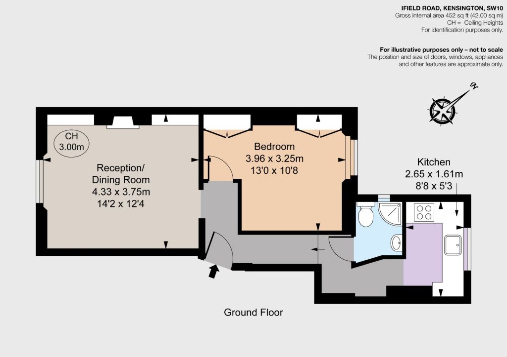 The reception room, which is located to front of the flat, is flooded with natural light, with the well-proportioned bedroom facing the rear.