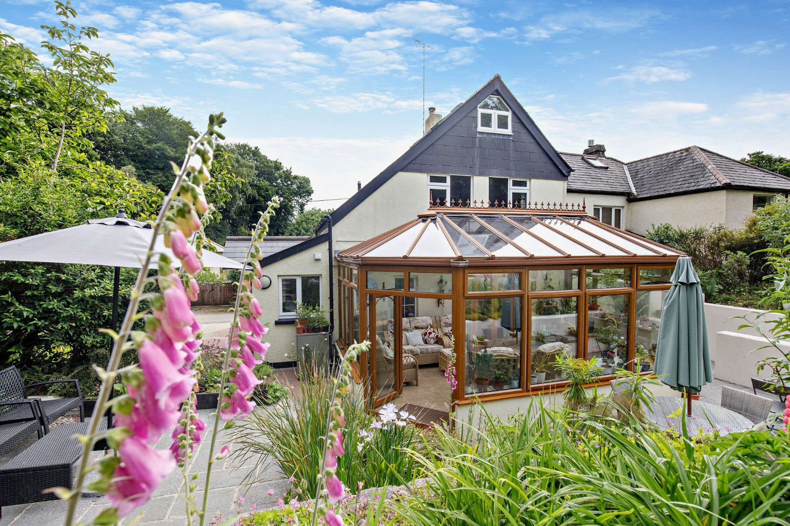 At the side of the house there is a parking space as well as a gated driveway leading to further parking. The splendid rear garden of 0.75 acres attracts an abundance of wildlife. There is a sunny patio area and an elevated lawn, as well as a wild flower meadow, an orchard, some specimen trees, including a walnut tree, established shrubs and a small stream running through the garden, feeding a pond. Outbuildings include the granite-built Atlas Forge, which could be developed subject to the necessary consents, while there are also, two sheds, two greenhouses and a summer house.