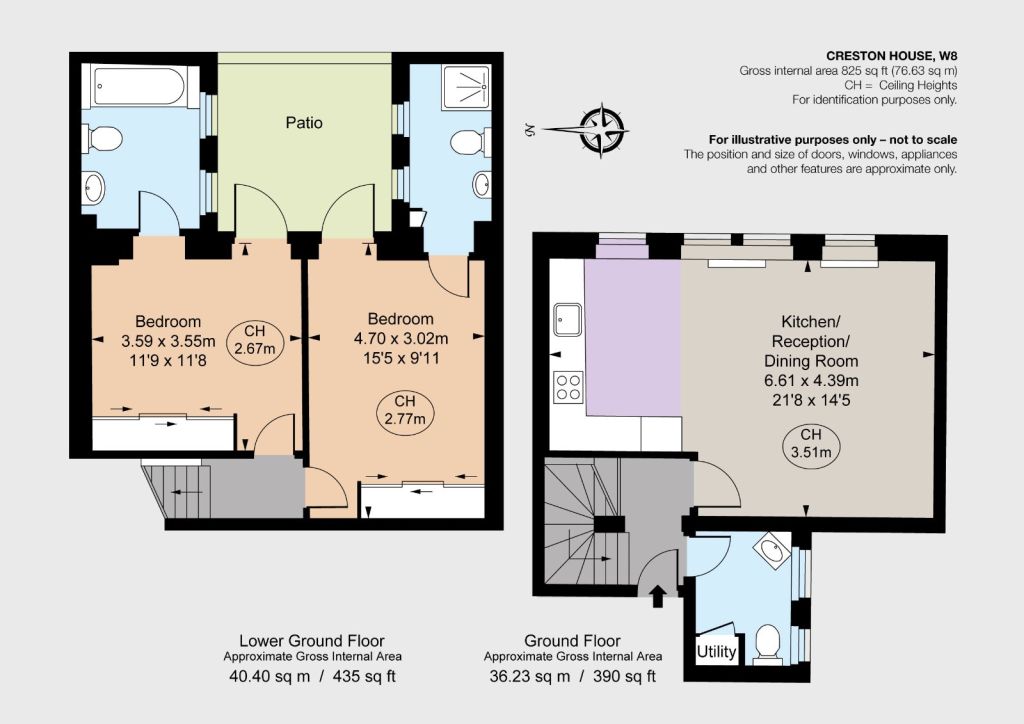 This well-presented two-bedroom apartment occupies approximately 825 sqft, with accommodation arranged over the ground and lower ground floors of an attractive Victorian building. The property benefits from having excellent entertaining space, with high ceilings, large east-facing windows that flood the room with natural light and a newly installed kitchen. There are two large double bedrooms, both with fitted storage and en suite bathrooms, plus there is a private patio garden and separate guest cloakroom.
