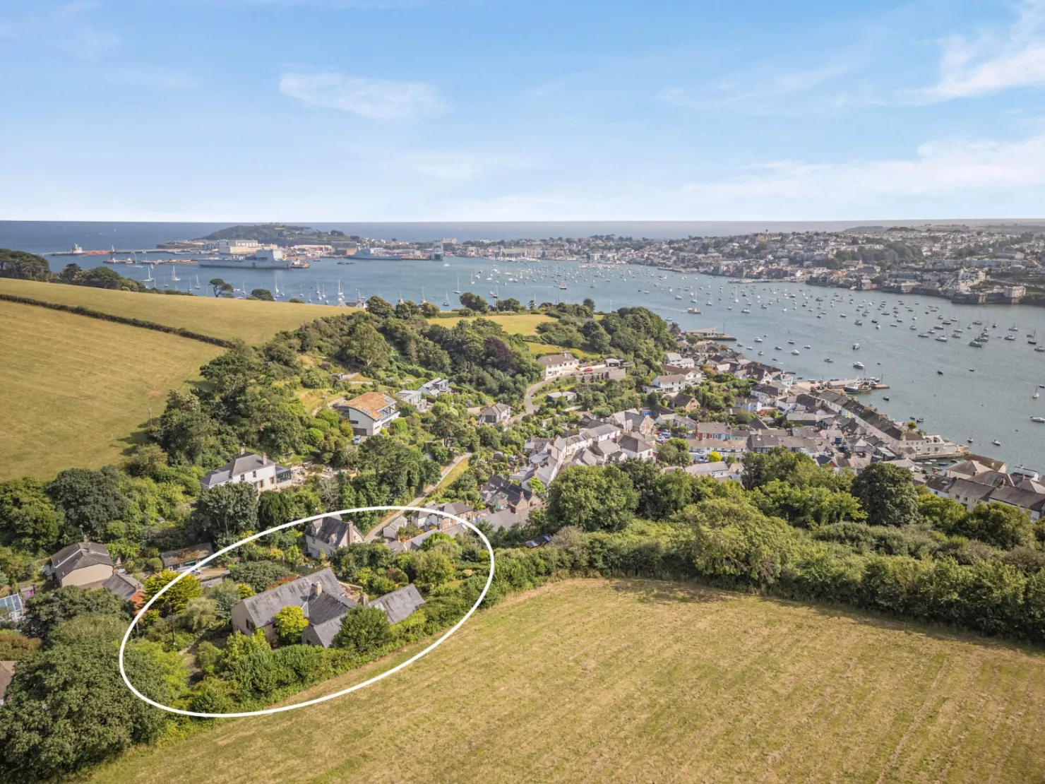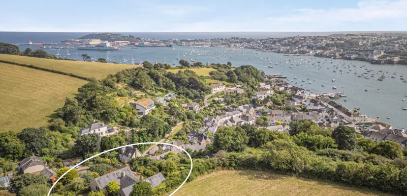 In an elevated position moments from the village and waterfront, this individual four bedroom home enjoys mature gardens of over 0.4 acres, c. 3,000 sq ft of accommodation, sea views, extensive parking, garage and incredible privacy.