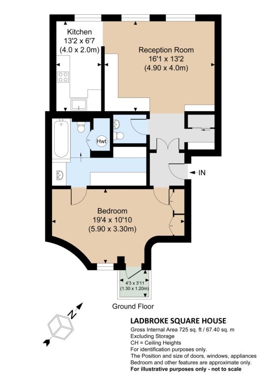 Located on the raised ground floor of a spectacular period building, this luxurious one-bedroom flat has over 3m high ceilings and an abundance of light from three large windows. The large bedroom suite is complete with bathroom, dressing area and south-facing balcony. The flat has a separate WC and ample storage space.