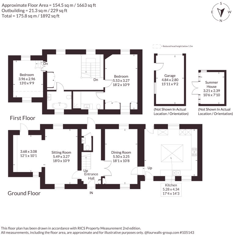 The walled courtyard of Lambourne House is accessed through grand stone pillars and is laid to gravel, providing parking for two vehicles. The south-facing rear gardens have been formally landscaped to create a wonderful outdoor setting, thoughtfully arranged to make the most of the far-reaching views beyond. Two elegant cypress trees frame the parkland vistas, while the planting includes shaped yew and box hedging and well-stocked borders that provide year-round interest. An Indian sandstone terrace spans the rear of the property, offering an ideal setting for relaxation and al fresco dining. The lawn is arranged over two levels, with steps leading down to a lower garden. The upper level features a stunning pagoda-style summerhouse, set beside a brick terrace. The detached garage is complemented by a parking area for one vehicle to one side, while a shed provides useful additional garden storage.