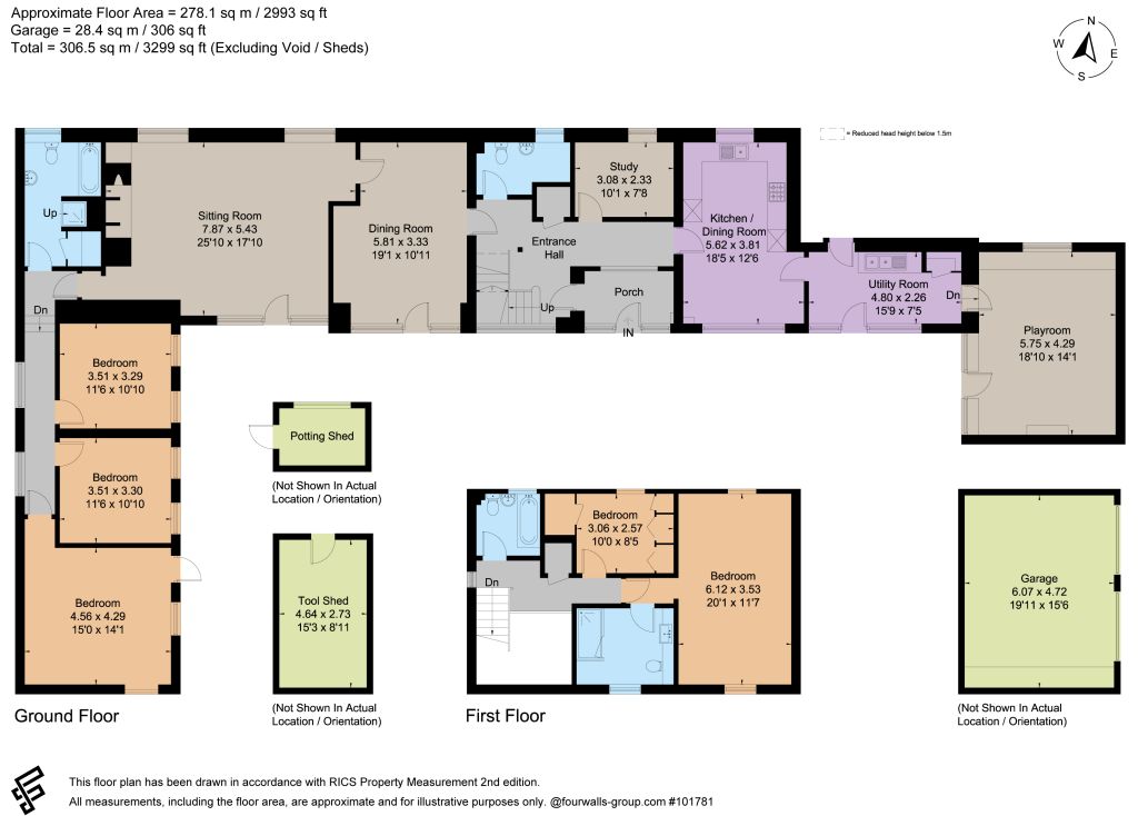 Stratford House, together with its neighbours, originally formed part of the Grade II-listed Manor Farm estate on the western edge of Wootton, dating back to the early 18th century. The barn was converted in the 1990s and has been sympathetically transformed into a residential property while retaining much of the building’s original character, including exposed stone walls, beamed ceilings and a cavernous fireplace. Though somewhat dated internally, the house is well maintained and provides a fabulous opportunity for modernisation and improvement. The U-shaped layout of the accommodation creates a fabulously spacious floor plan, with excellent versatility and potential for the new owner to arrange as they see fit. Most of the accommodation is on the ground floor, offering scope to use bedrooms as reception rooms, or vice versa. The layout also serves to shelter the gardens within, creating a fabulously private outside space. Downstairs, the house is entered into an internal porch and a central reception hall leading to a cloakroom/WC and study. The kitchen/dining room, utility room and playroom are situated in the east wing, while within the west wing there is a formal dining room, a fantastically spacious sitting room and three double bedrooms, together with a family bath/shower room. Accessed from the entrance hall, a flight of stairs leads up to the first floor landing where there is an en suite principal bedroom, a further bedroom/dressing room and a final bathroom.