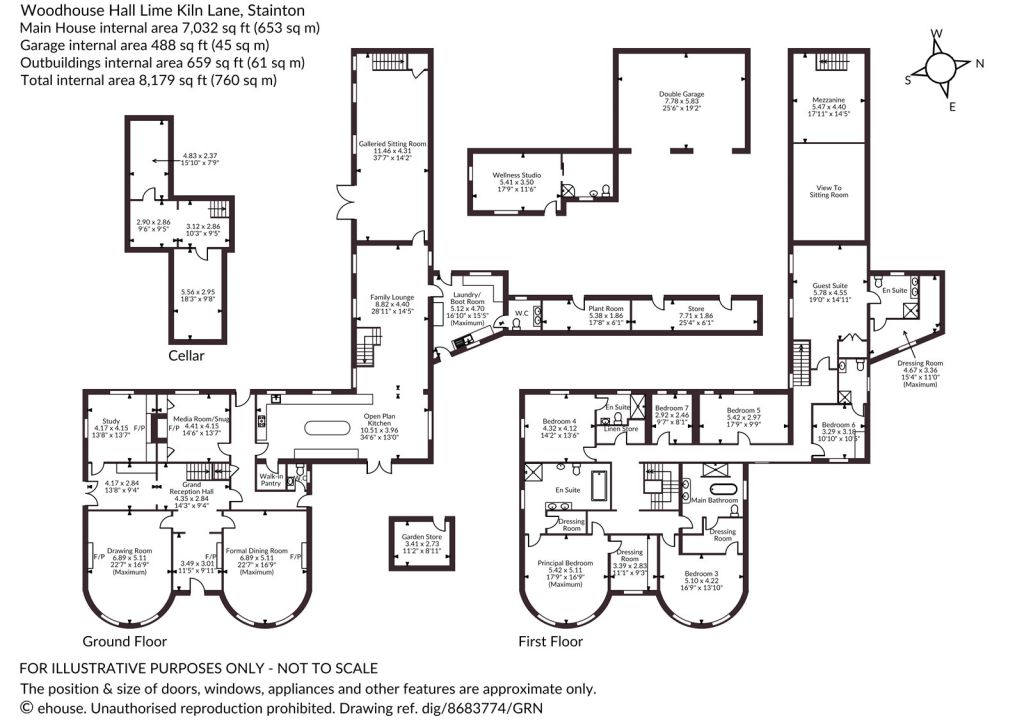 • Main house 7,032 sq ft (653 sq m)