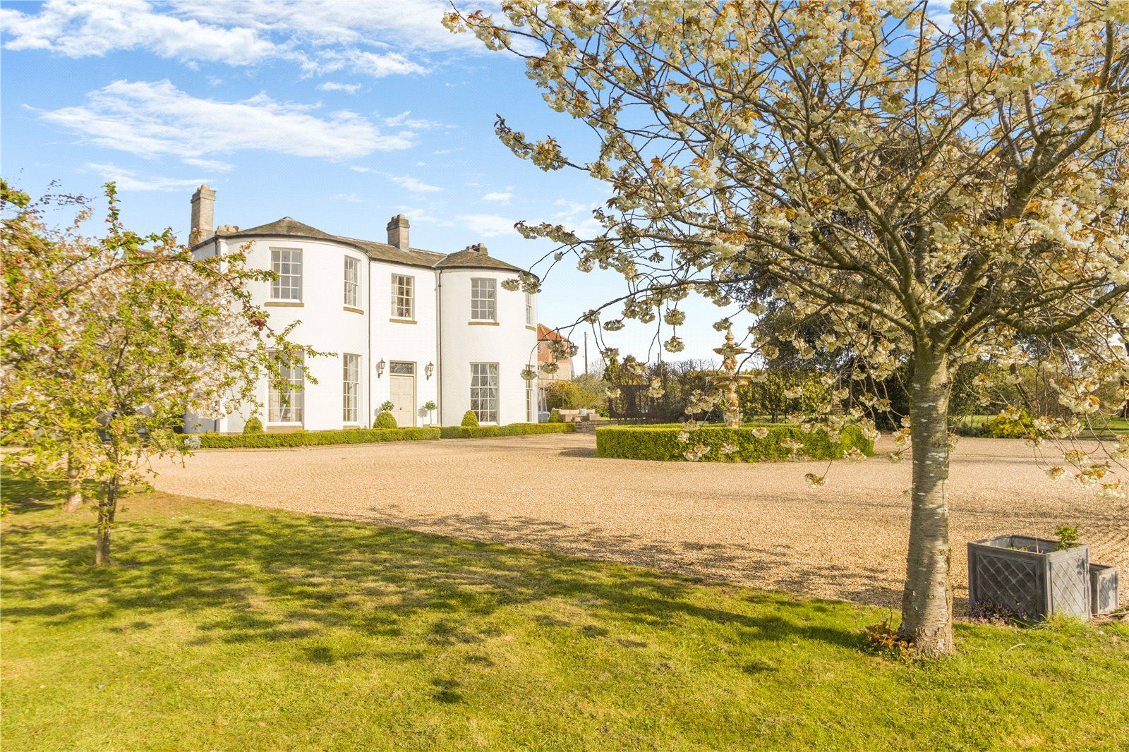 Outside; The impressive grounds extend to approximately 16 acres and have been thoughtfully designed to offer both formal elegance and natural beauty. The principal lawned garden is partially enclosed by an impressive eleven-foot curved stone wall, with a ha-ha to the front allowing uninterrupted views across open countryside and surrounding fields. Expansive limestone terraces provide superb spaces for outdoor entertaining, while a beautifully established walled garden is richly planted with a variety of herbaceous borders.