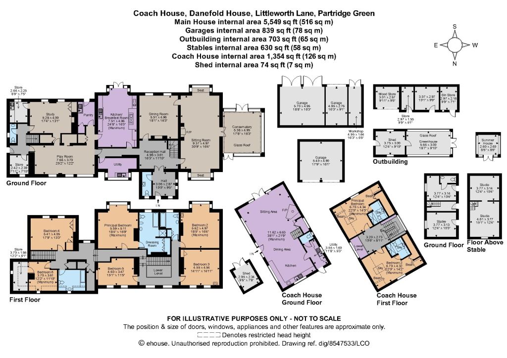 Guildford Estate AgentsHorsham Estate AgentsWith over 5,500 sq. ft of elegantly presented accommodation, Danefold House is a fine period property with characteristics including high-ceilinged rooms, lofty windows, panelling to walls and features fireplaces. The reception hall gives the first glimpse of the quality and style of the home with a striking oak staircase rising to the galleried landing above. The ground floor comprises a generous sitting room with wood-burning stove, window seats set within bay, alcoves to two aspects and doors opening into a conservatory where the garden can be enjoyed throughout the seasons. The adjoining formal dining room offers the perfect setting for hosting guests with an impressive kitchen/breakfast just adjacent. With contemporary cabinetry, topped with granite work surfaces, the kitchen is centred around an Aga stove and features French doors within a glazed recess. A practical study and a flexible leisure room complete the ground floor facilities. Step level changes on the first floor create interest and the rooms enjoy the benefit of elevated views over the garden and grounds. There are six bedrooms and two family bathrooms, with the principal room extending into a bay alcove and having access to an en suite and dressing room. Supplemental accommodation is provided in two rooms on the floor above the stable block, currently used as a music studios. A detached Coach House provides an additional dwelling which offers a wealth of character and charm. On the ground floor, the open-plan layout provides a sociable setting with a seating area enjoying the warming ambience of a wood-burner and ample space for a dining zone adjoining a kitchen which is fitted with contemporary cabinetry. A galleried landing on the upper level gives access to two en suite bedrooms where the exposed timber rafters create an attractive feature. A paved terrace offers a sunny spot for outdoor dining with direct access from the sitting area.